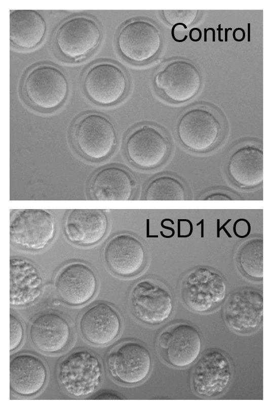 右侧的图像显示了LSD1缺陷OYCTES的减少缺陷和破碎化。